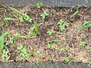 前に咲いたアサガオの種が落ちたようで、種まきをしていないところから、