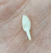 実を上手に割ると中から白い小人のスプーン(新芽の素の葉)が出てくるよ。