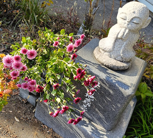 そのお地蔵様の横ではお供えされたように地植えの菊の花が花盛り。